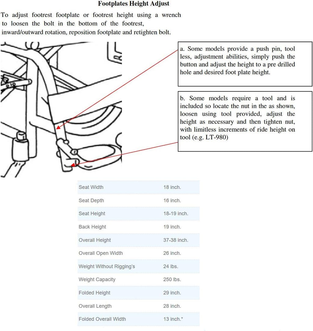 Swing away footrest are standard. These high strength poly-resin based were designed specifically with impact resistant, brittleness resistance and injection molded with an architecture that brings lightweight and strength into your wheelchair. This design allows us to continue to lighten the over weight of the wheelchair to under 24 lbs. You may choose to flip up, remove, or rest your feet while operating the wheelchair.