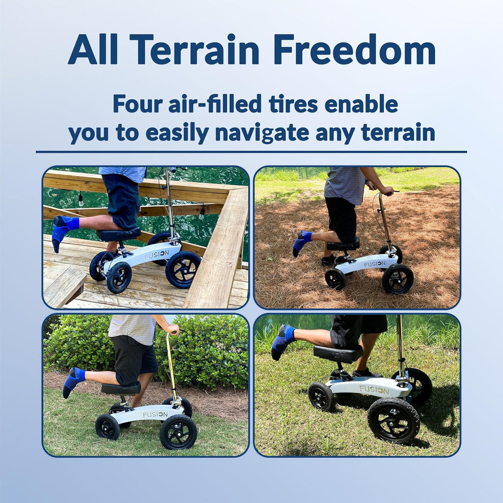 All Terrain Fusion Patented Knee Scooter with 4 Wheel Steering - Knee Walker for Adults for Foot Surgery, Broken Ankle, Foot Injuries - Heavy Duty Knee Rover Scooter for Broken Foot