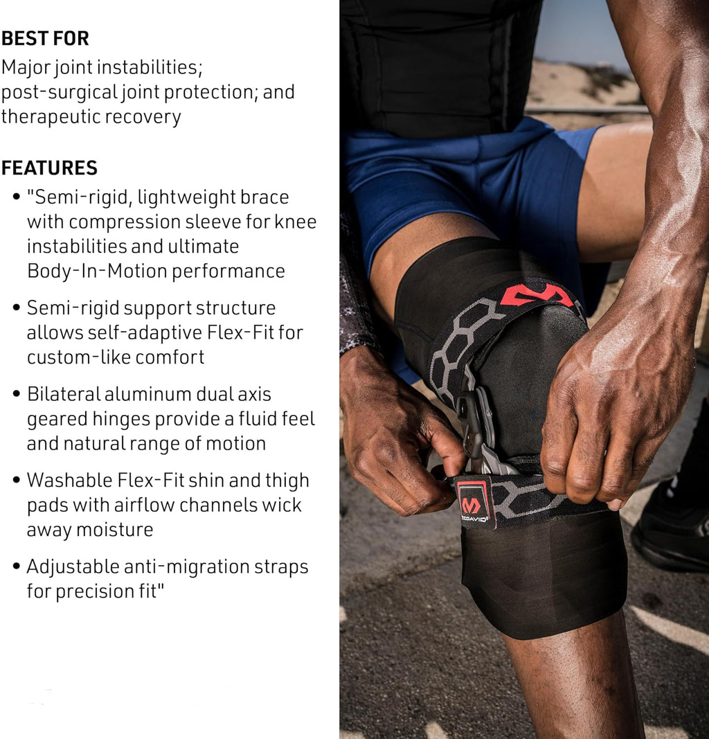 • PROTECTION / PREVENTION: This hinged knee brace for men and women is designed as our most advanced hinged knee brace with side stabilizers, featuring bi-lateral aluminum hinges for a fluid feel, natural range of motion, and knee support