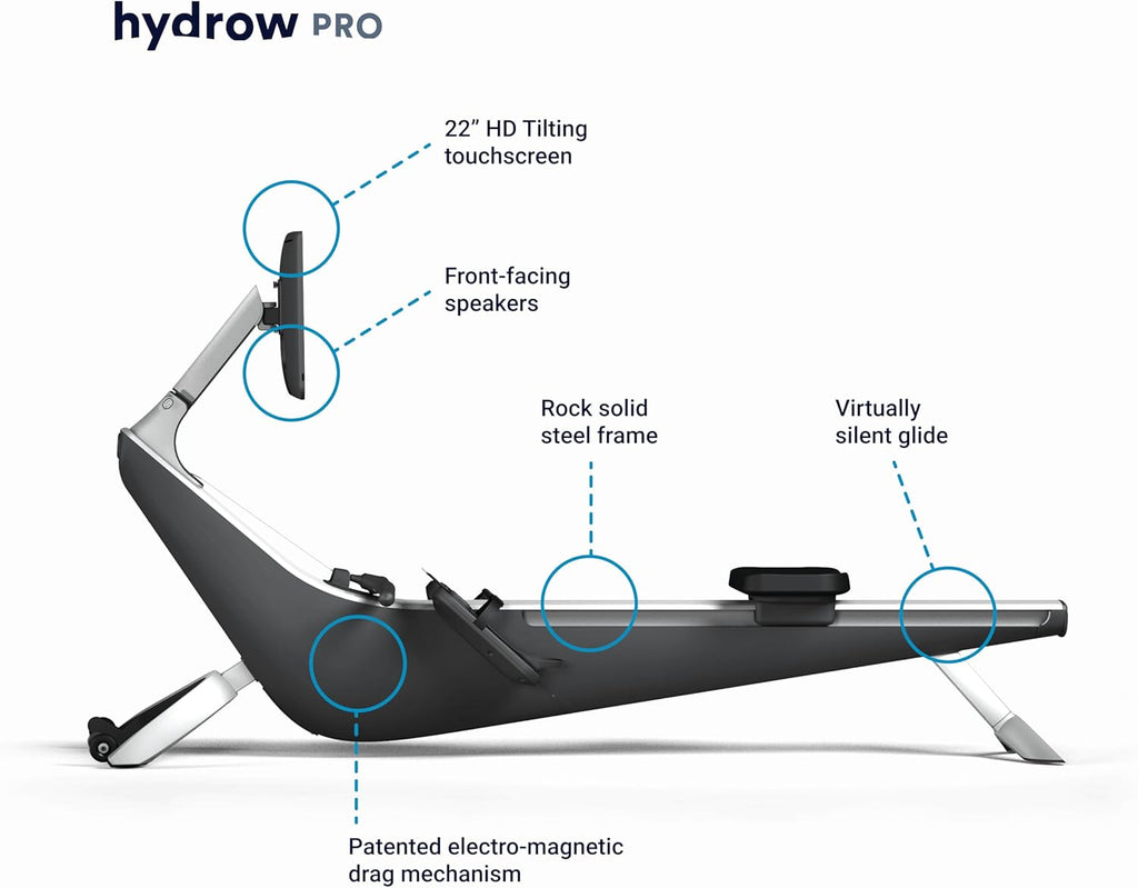 • ESCAPE INTO IMMERSIVE WORKOUTS. Featuring a crystal-clear 22” HD rotating touchscreen display with front-facing speakers, rowing on the Pro rower is sure to take you places. Even better – the rower itself is designed to make indoor rowing feel like on-the-water rowing, thanks to our proprietary electromagnetic drag technology. Features include padded seat, adjustable foot straps, and a low-stress grip handle.