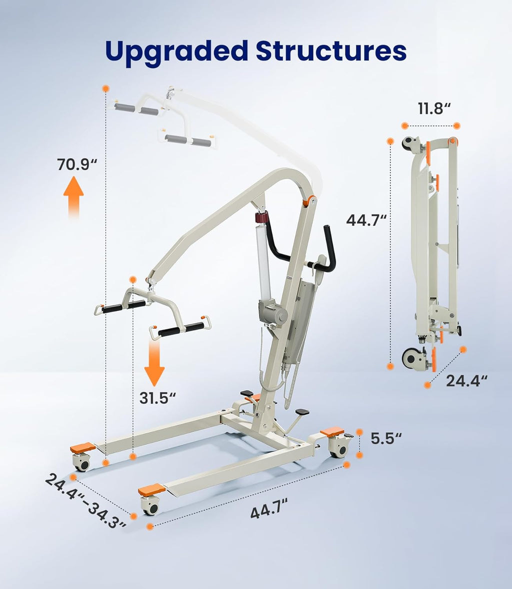 Upgrade Foldable Electric Patient Lift, Medical Body Transfer Lift with Sling, Lift Chair Lift Assist for Elderly