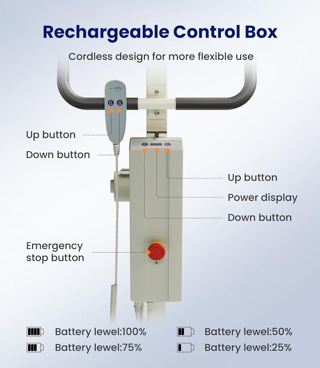 • [Enhanced Safety] - Designed with user - safety as a top priority, this electric transfer lift equipped with an emergency stop button and a manual lowering device. These features provide immediate response capabilities in critical situations, ensuring peace of mind.